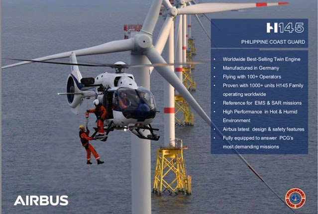Airbus Helicopters confirmed MaxDefense's post made last 03 August 2018, that the Philippine Coast Guard has ordered for a single H145 twin-engine 4-ton multi-purpose helicopter.