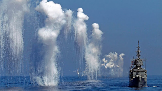 | Chaffs were fired from naval ships during an exercise by the Republic of China Navy (ROCN). Photo credits to ABC News. |